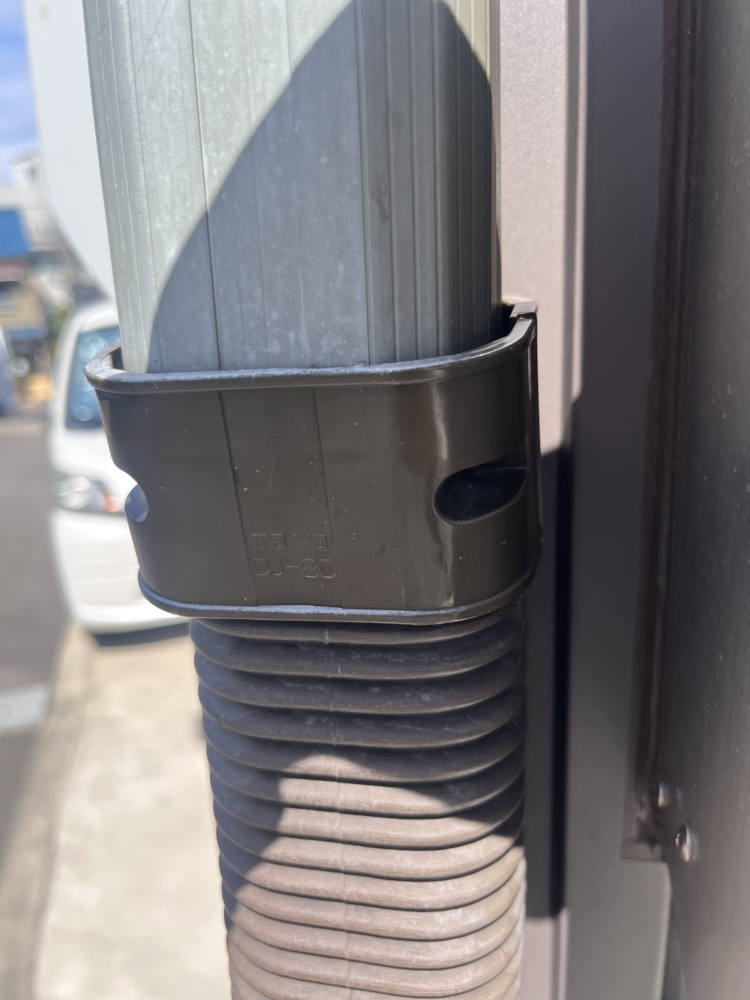 うちの新築工事で築5年程経つ お客様からの相談事がありました。 エアコンの配管カバーが劣化で色あせたました。ウチの外壁はまだまだ艶ありその差は歴然!玄関近くともなっており目立つので交換しました♪ 配管保護としては全然問題ないのですが、、、いまいちよくわからないので たまたま運悪く変な物に当たったのかな?
