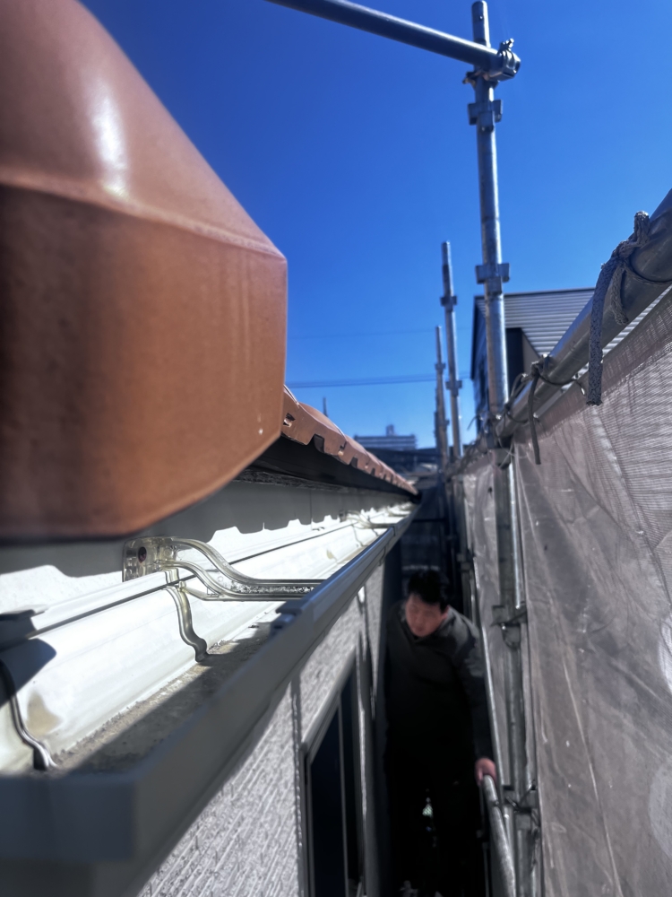 この現場は外壁塗装で足場を組んだのですが下から見上げると、間近でみるのはやはり違います。