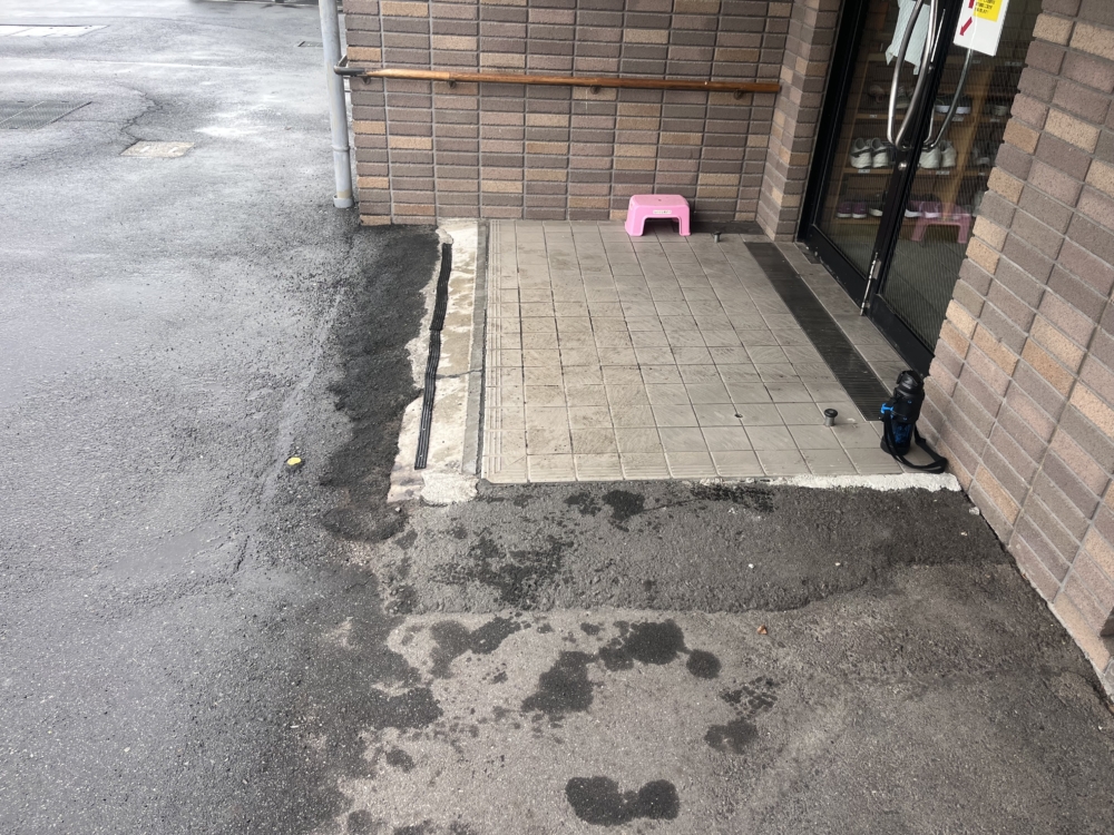 今回は高齢者施設からお声いただきまして、施設内出入りする際地面が補修やら段差でガタガタして 通行時転倒する恐れがあった為 大きめにコンクリートで緩やかな勾配でかつ滑りにくくする為ザラザラ仕上げの刷毛引き工法を採用しました。