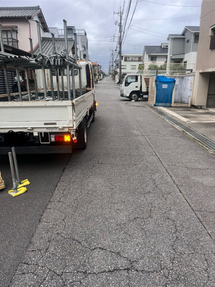 工事するので足場を設置しようと思いましたが 隣のマンションの方もリフォームするため道路に作業車が出てました。